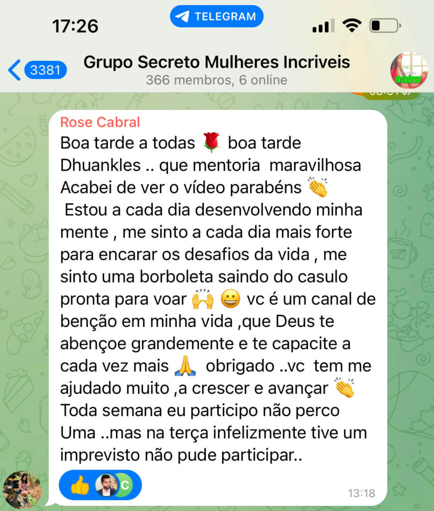 Você terá acesso a um grupo exclusivo no Whatsapp, onde receberá todas as informações importantes e atualizadas sobre o Clube das Ladies. Fique à vontade para se juntar e ficar bem informada