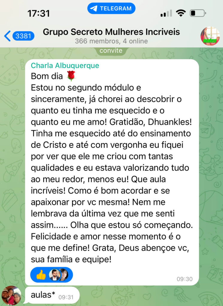 Sim! o curso é destinado à você que quer se tornar uma mulher poderosa e viver relacionamentos incríveis, vai aprender a melhor forma de se comunicar e conversar com seu homem e como encantá- lo, tornando-se uma mulher irresistível