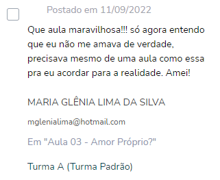 Este é o espaço ideal para você explorar suas emoções, fortalecer sua autoestima e construir relacionamentos onde o respeito e a autenticidade são prioridades. Aqui, você não apenas aprende, mas também vivencia uma verdadeira jornada de autoconhecimento e empoderamento feminino. Esse curso foi pensado para ser um lugar seguro e inspirador, onde cada passo é guiado para que você descubra o valor e a força que sempre existiram dentro de você.