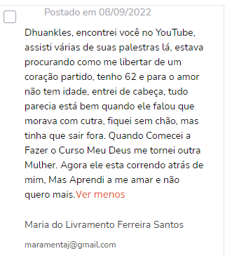 Sim, esse curso é também para quem está passando por dificuldades no casamento e quer superar brigas, traições, entre outros…